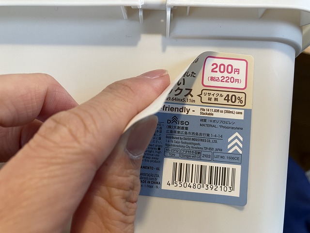 まず、「環境にやさしいコンテナボックス」のシールを剥がします。
