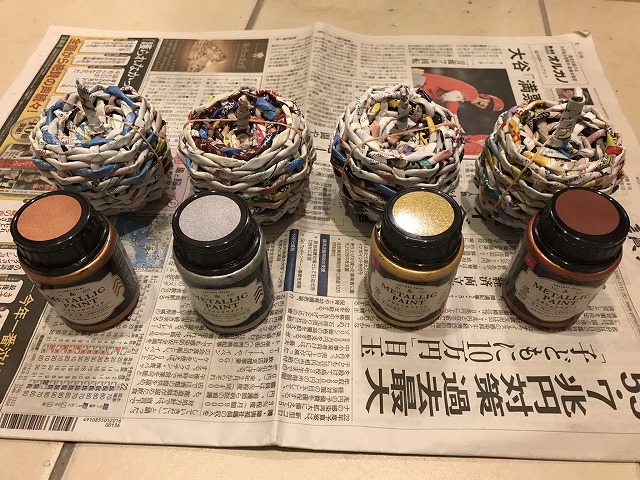 ちなみに、持ち手や留め具はメタリックペイント(シルバー)を塗らずに、メタリックペイント(黒)を塗ったままにしました。
